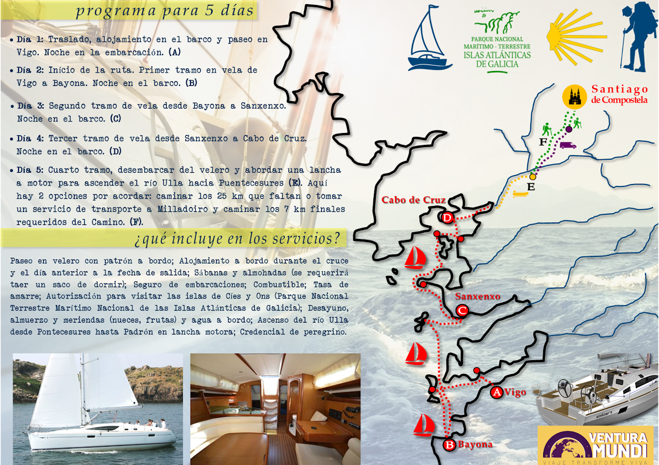 - Condiciones climáticas: Al tratarse de una modalidad realizada en barco a vela, la duración y programación de la travesía pueden sufrir alteraciones según las condiciones climáticas.