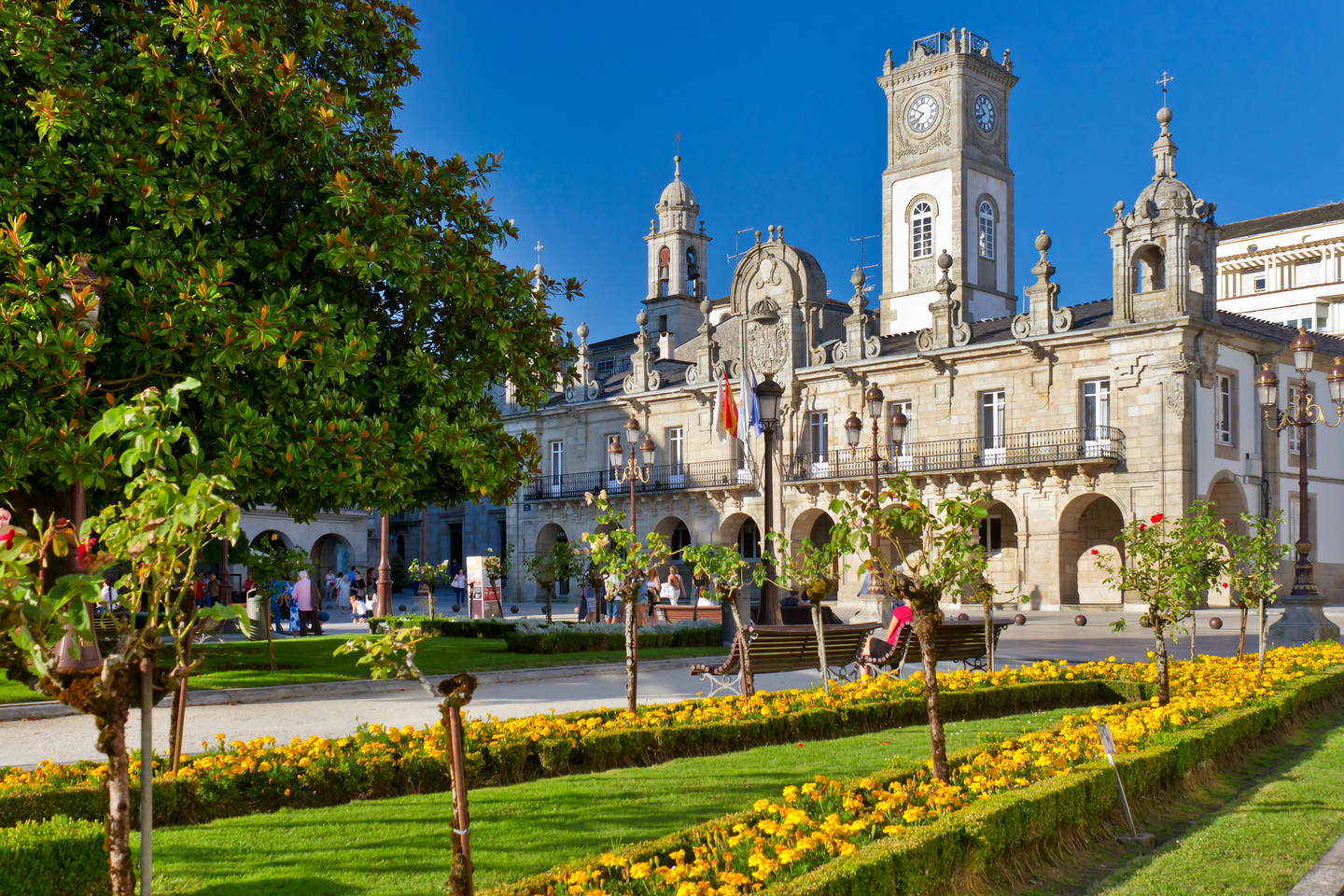 A Coruña, ubicada en las llamadas Rías Altas, es una ciudad portuaria dinámica y cosmopolita, conocida por su impresionante paseo marítimo, playas espectaculares y arquitectura histórica. El emblemático faro de la Torre de Hércules, considerado el más antiguo en funcionamiento continuo del mundo, domina el paisaje costero y ofrece vistas panorámicas impresionantes de la ciudad y el océano.